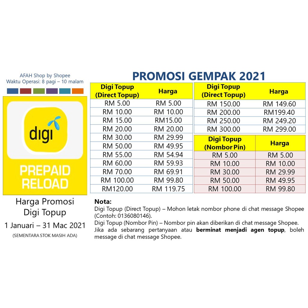 Cara Topup Digi secara Online. Perkhidmatan selular Digi seperti kita tahu digunakan oleh kebanyakan rakyat Malaysia keraa kecanggihan teknologinya pakej internet yang laju dan juga mempunyai. Semak jumlah tambah nilai dan details yang diberi dan akhir sekali klik butang Pay upon completion.