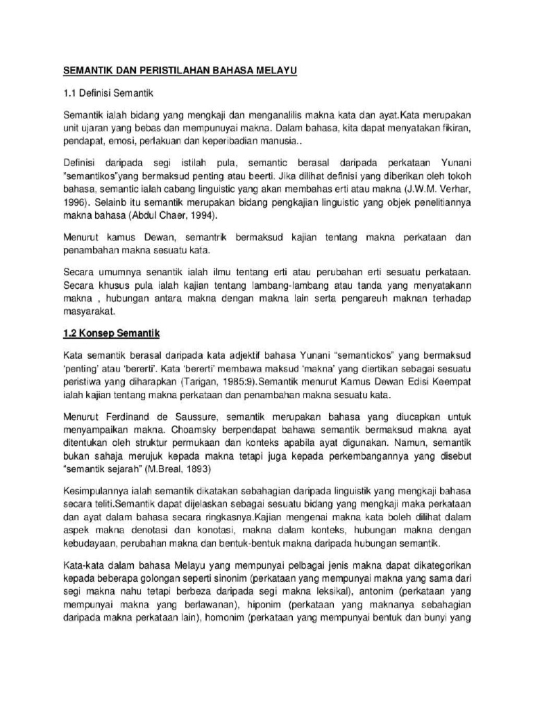 Semantik Dan Peristilahan Bahasa Melayu Pdf